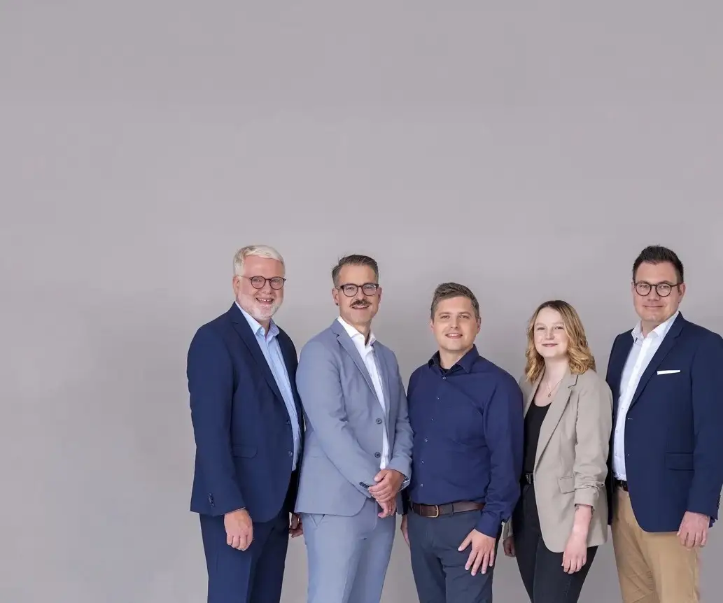 Das Team von Essen-Stadtwald freut sich neue Hörerlebnisse zu schenken. Von links nach rechts: Wim Eckhorn, Geschäftsführer; Hendrik Baudisch, Hörakustikermeister und Fachgeschäftsleiter; Andreas Letzel, Hörakustikermeister; Melina Geßen, Hörakustikerin; Friedrich Vollbach, Geschäftsführer